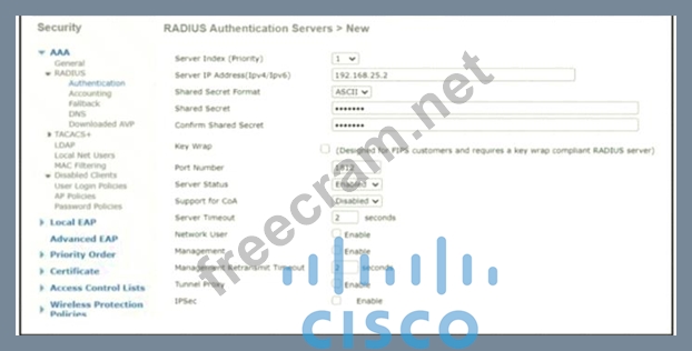 Question 56: Drag and drop the Cisco Wireless LAN Controller security set...