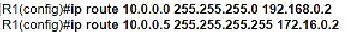 A network engineer must configure R1 so that it sends all packets destined to the 10.0.0.0/24 network to R3, and all packets destined to PCI to R2. Which configuration must the engineer implement?