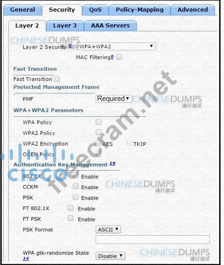 Question 56: Drag and drop the Cisco Wireless LAN Controller security set...