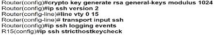 Which minimum configuration items are needed to enable Secure Shell version 2 access to R15?