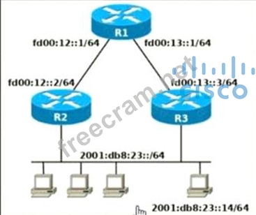 Packets toward host 2001:db8:23::14 preferably must be forwarded through R3.
