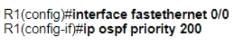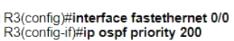 Which two configurations must the engineer apply on this network so that R1 becomes the DR? (Choose two.)