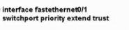 The designated switch interface fastethernet0/1 must transmit packets using the same priority for data when they are received from the access port of the IP phone.