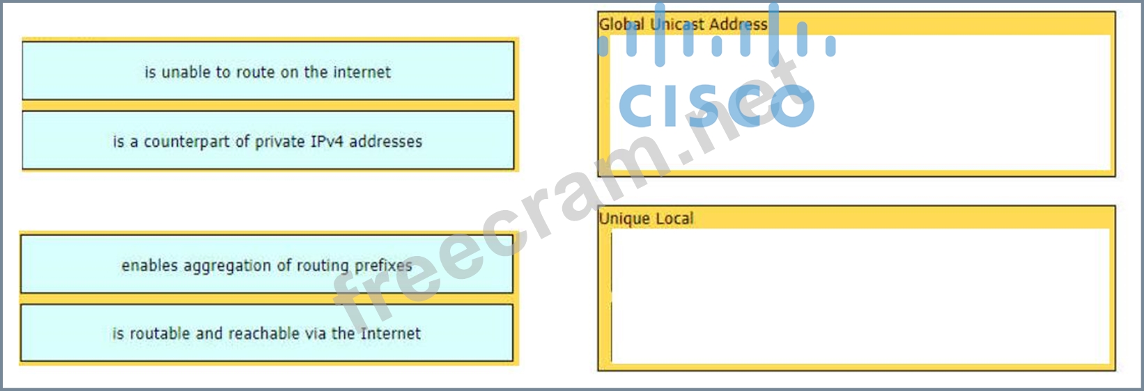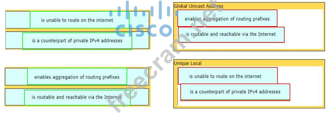 Drag and drop the characteristic from the left onto the IPv6 address type on the right.