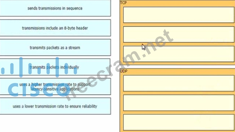Question 380: Drag and drop the characteristics of transport layer protoco...