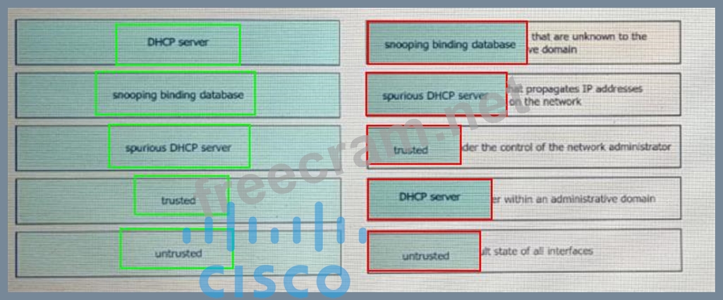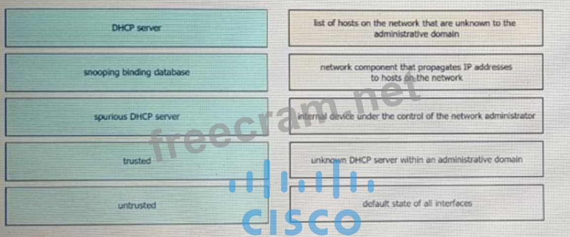 Drag and drop the DHCP snooping terms from the left onto the descriptions on the right.