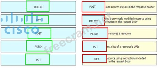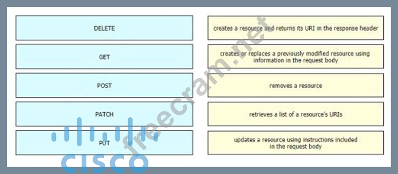 Drag and drop the HTTP methods used with REST-Based APIs from the left onto the descriptions on the right.