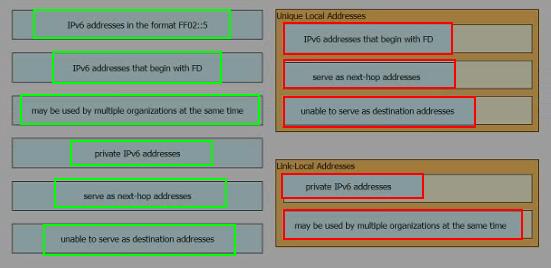 Drag and drop the IPv6 address description from the left onto the IPv6 address types on the right. Not all options are used.
