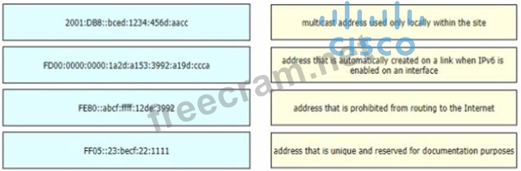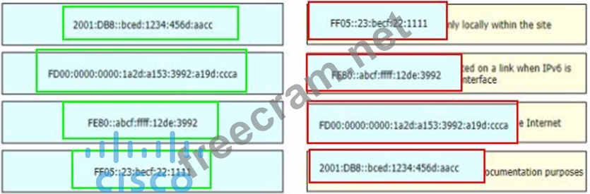 Drag and drop the IPv6 address types from the left onto their description on the right.