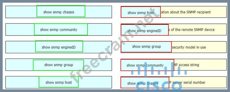 Question 67: Drag and drop the SNMP manager and agent identifier commands...
