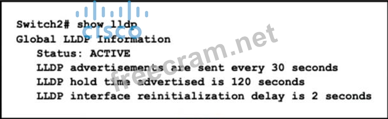 A network engineer must update the configuring on switch2 so that it sends LLDP packets.