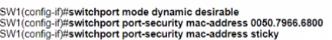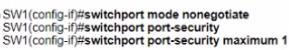 An engineer must configure the interface that connects to PC 1 and secure it in a way that only PC1 is allowed to use the port No VLAN tagging can be used except for a voice VLAN. Which command sequence must be entered to configure the switch?