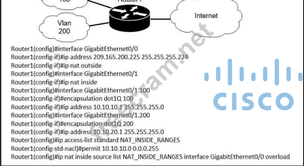 Users on existing VLAN 100 can reach sites on the Internet. Which action must the administrator take to establish connectivity to the Internet for users in VLAN 200?