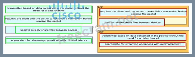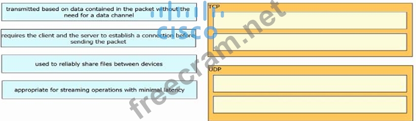 Question 34: Drag and drop the TCP or UDP details from the left onto thei...