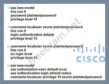 After a recent security breach and a RADIUS failure, an engineer must secure the console port of each enterprise router with a local username and password. Which configuration must the engineer apply to accomplish this task?