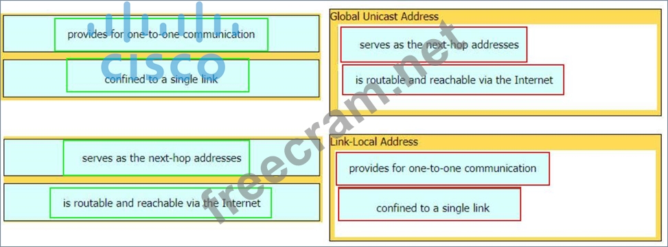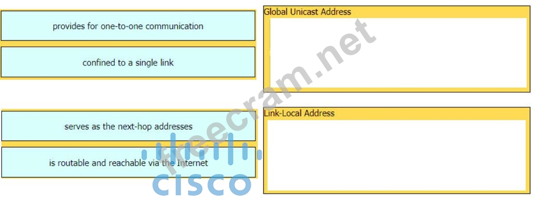 Drag and drop the characteristic from the left onto the IPv6 address type on the right.