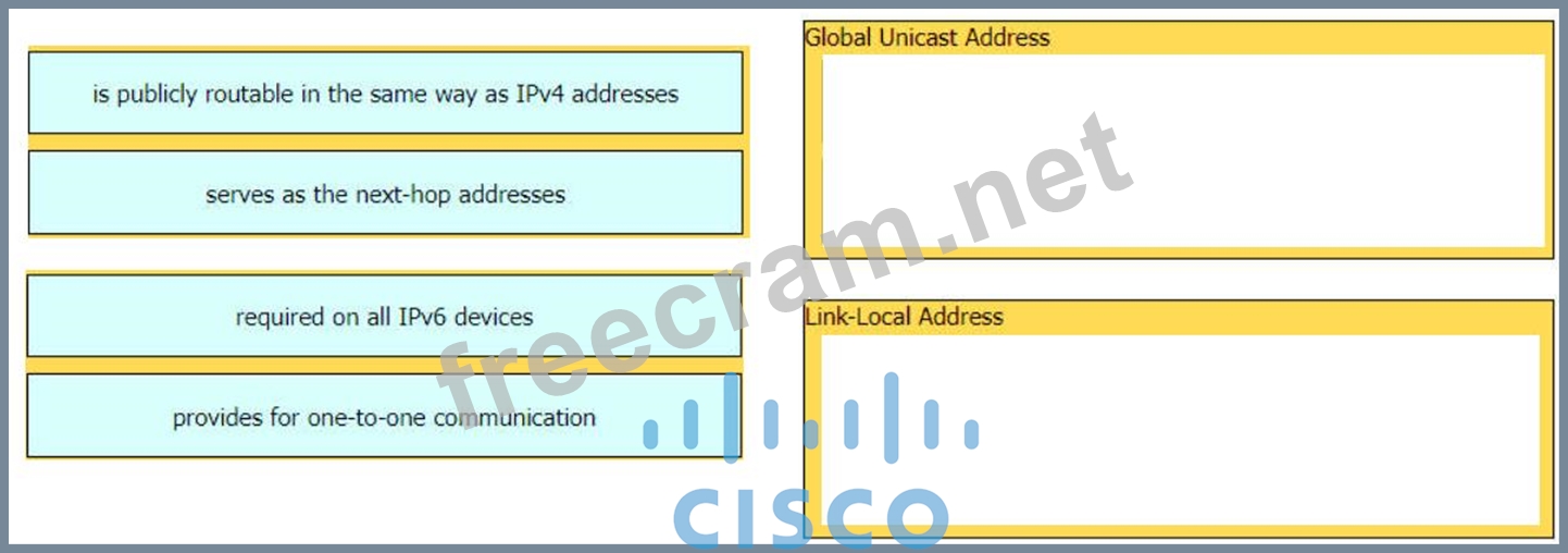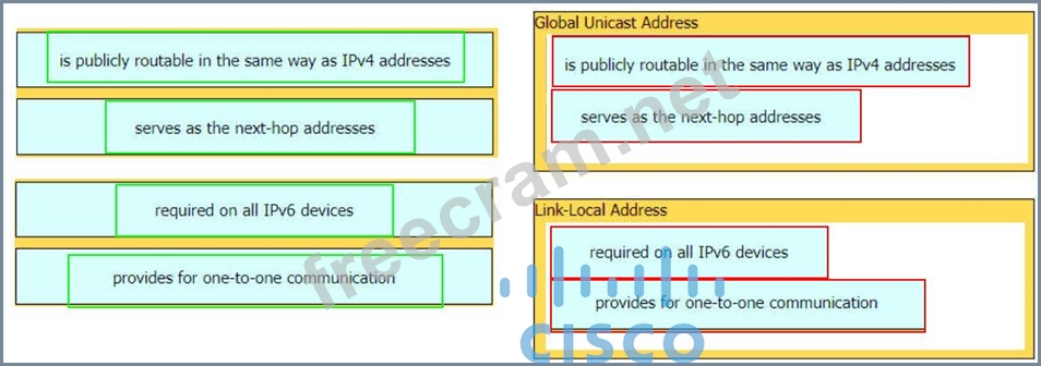 Drag and drop the characteristic from the left onto the IPv6 address type on the right.