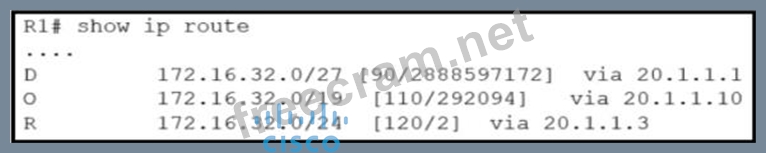 Question 432: R1 has learned route 10.10.10.0/24 via numerous routing prot...