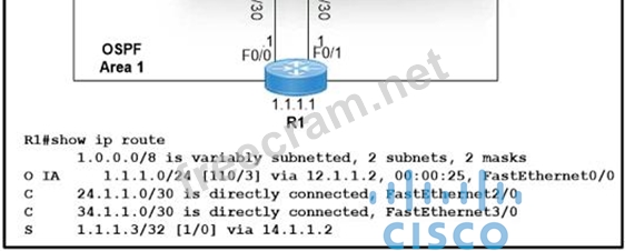 Question 376: Refer to the exhibit. (Exhibit) Which prefix did router R1 l...