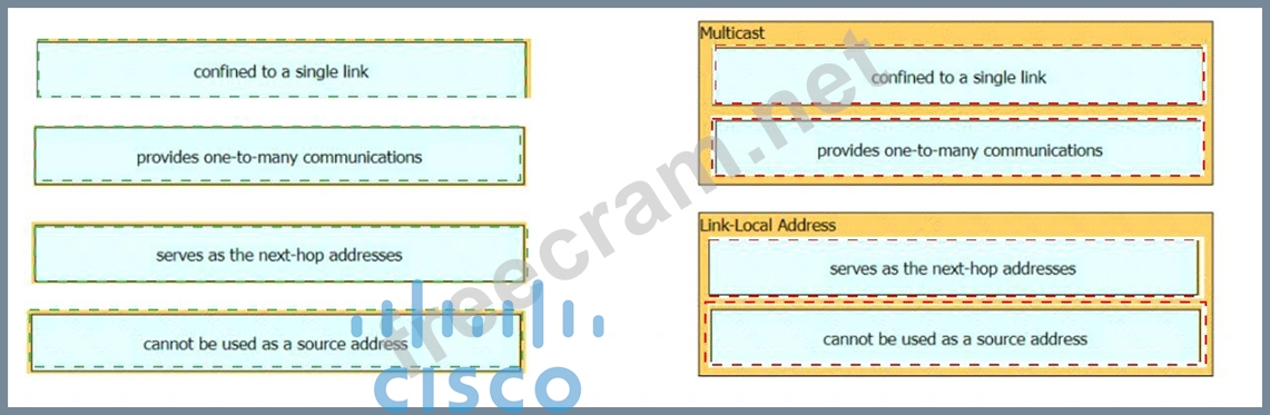 Drag and drop the characteristic from the left onto the IPv6 address type on the right.