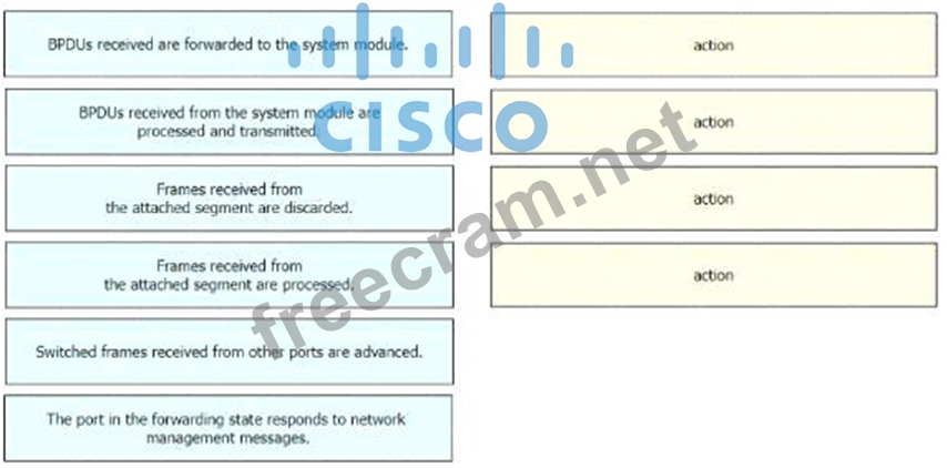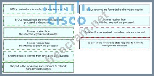 Drag and drop the Rapid PVST+ forwarding state actions from the left to the right. Not all actions are used.