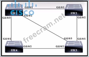 SW4 and SW1 have the same priority (32,768). To break the tie, compare the MAC addresses: