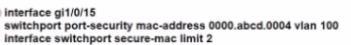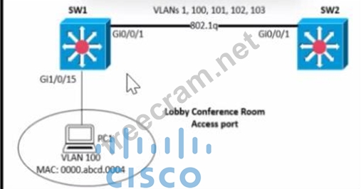 SW1 supports connectivity for a lobby conference room and must be secured. The engineer must limit the connectivity from PCI lo ma SW1 and SW2 network. The MAC addresses allowed must be Limited to two.