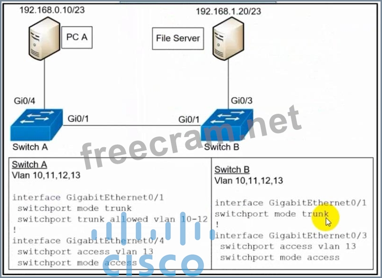 A network engineer must configured communication between PC A and the File Server. To prevent interruption for any other communications, which command must be configured?