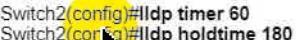 A network engineer must update the configuration on Switch2 so that it sends LLDP packets every minute and the information sent via LLDP is refreshed every 3 minutes Which configuration must the engineer apply?