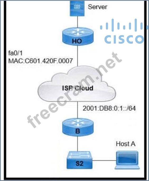 An engineer is configuring the HO router. Which IPv6 address configuration must be applied to the router fa0'1 interface for the router to assign a unique 64-brt IPv6 address to Itself?