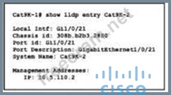 The network administrator must prevent the switch Cat9K-2 IP address from being visible in LLDP without disabling the protocol. Which action must be taken must be taken to complete the task?