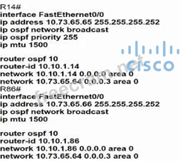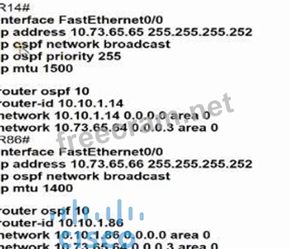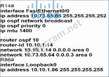 Which configuration allows routers R14 and R86 to form an OSPFv2 adjacency while acting as a central point for exchanging OSPF information between routers?
