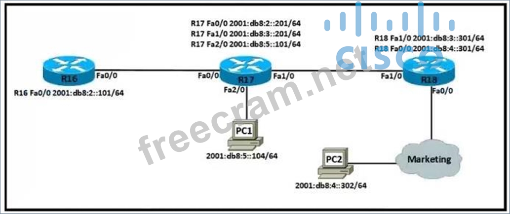 Question 388: Refer to the exhibit. IPv6 must be implemented on R1 to the ...