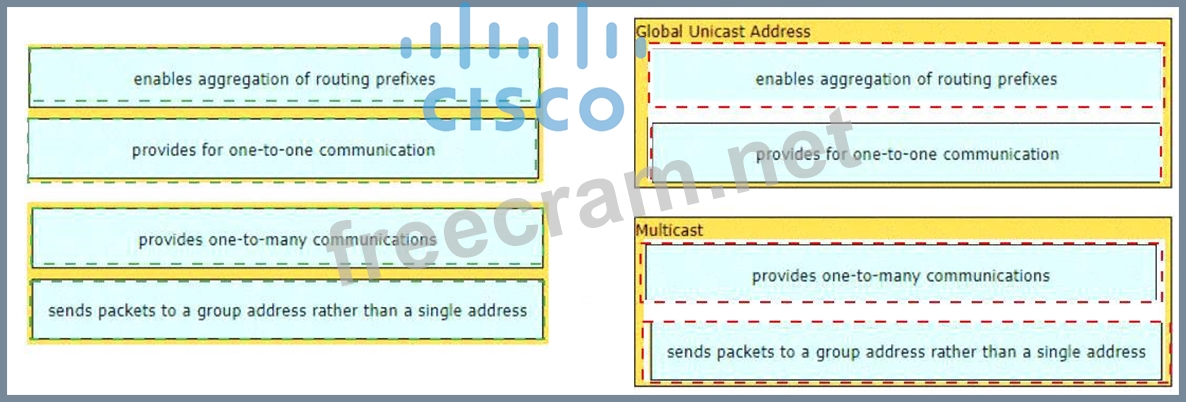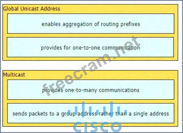 Drag and drop the characteristic from the left onto the IPv6 address type on the right.