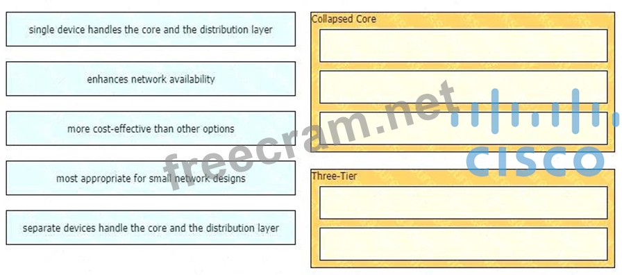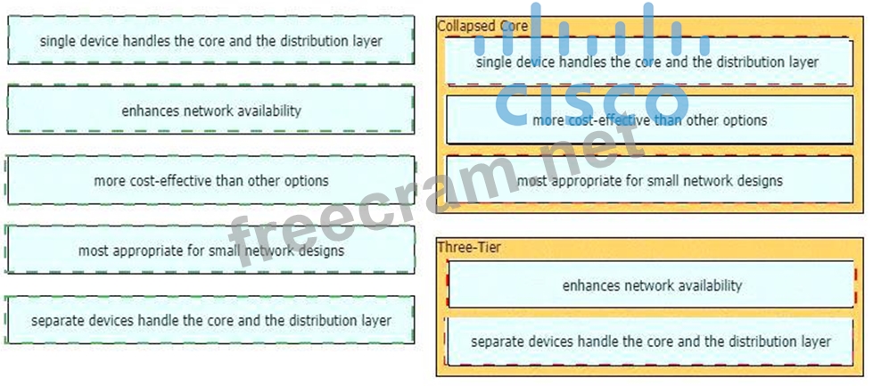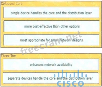 Drag and drop the characteristics of network architectures from the left onto the type of architecture on the right.