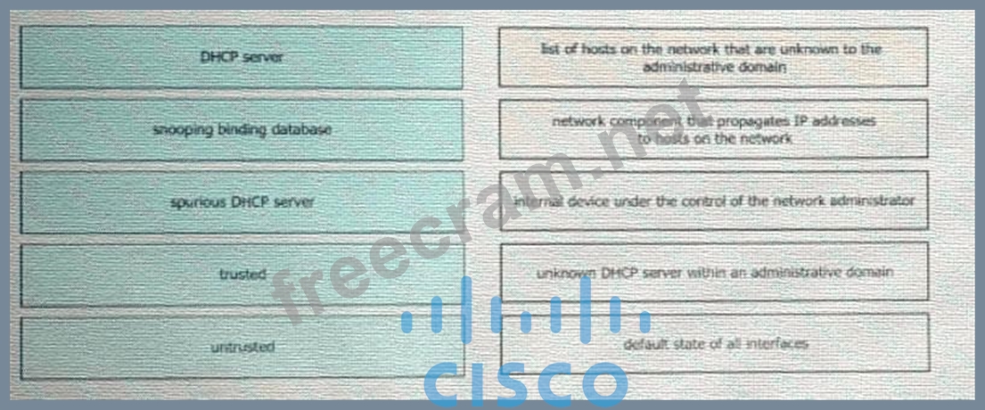 Drag and drop the DHCP snooping terms from the left onto the descriptions on the right.