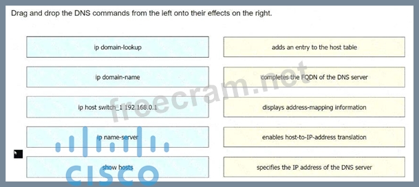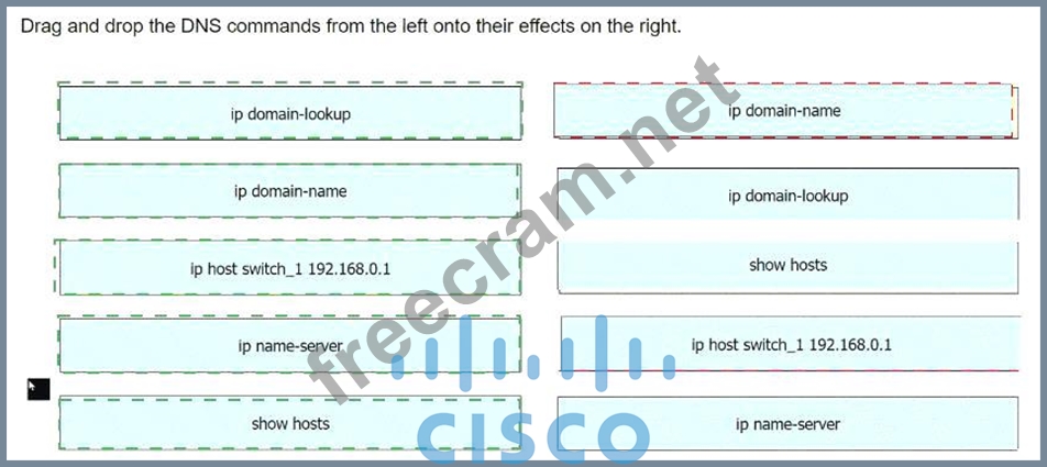 Drag and drop the DNS commands from the left onto their effects on the right.