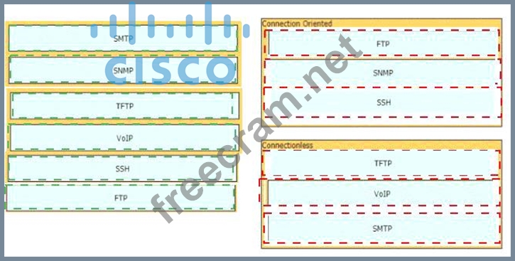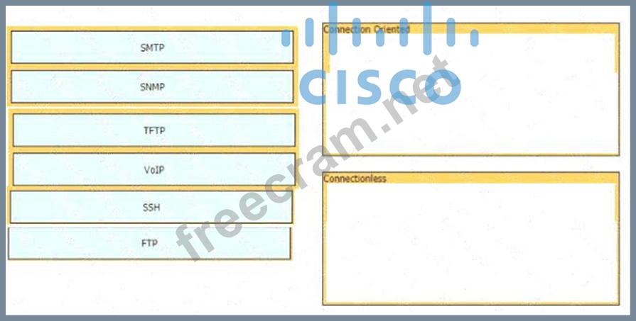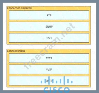 Drag and drop the network protocols from the left onto the correct transport services on the right.