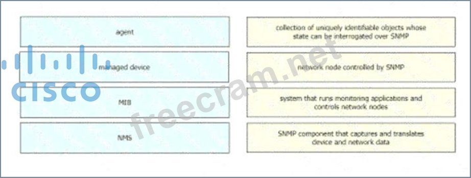 Question 405: Drag and drop the SNMP components from the left onto the des...