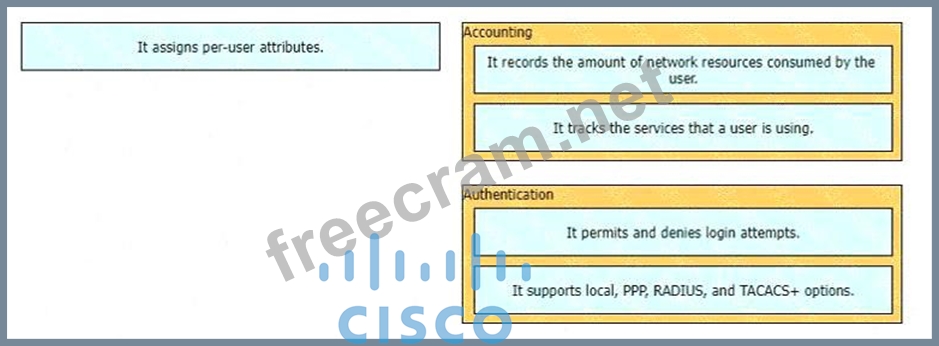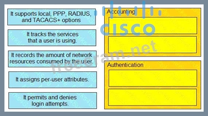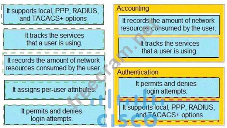 Drag and drop the statements about AAA from the left onto the corresponding AAA services on the right. Not all options are used.