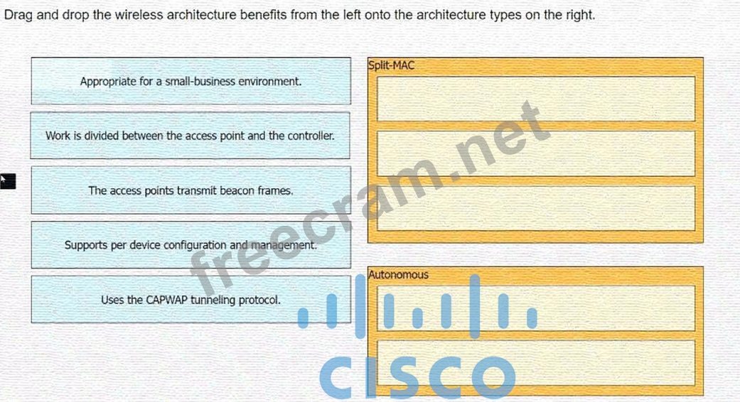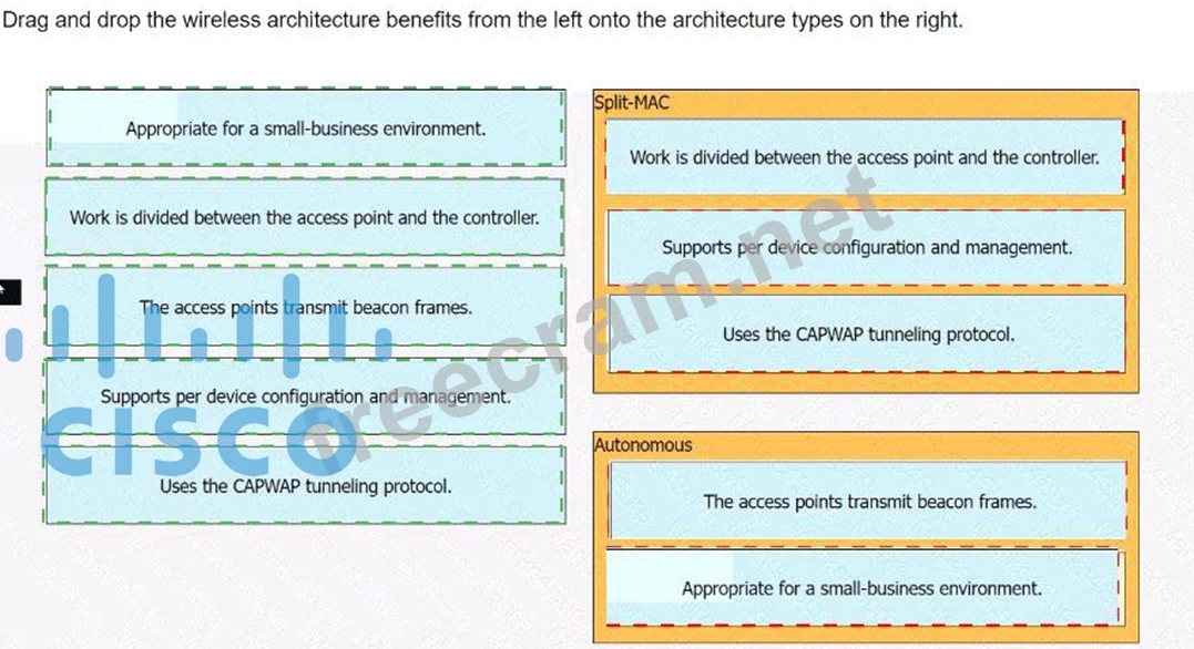 Question 387: Drag and drop the wireless architecture benefits from the le...