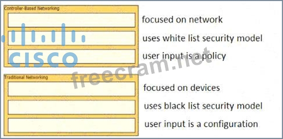 Drag and drop to the characteristics of networking from the left onto the correct networking types on the right.