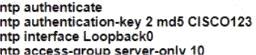 Question 443: R1 as an NTP server must have: * NTP authentication enabled ...