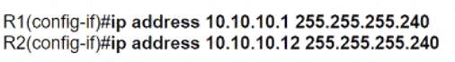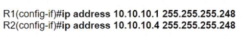 We have to configure the link which will need 2 IP addresses, 1 for each port on each Router. We also need 2 spare IPs for future growth, so overall we need 4 usable IP addresses. If we consider using the /30 (255.255.255.252) mask, it will give us 2^2 (=4) i.e., total 4 IPs and 2 usable IPs, which doesn't fulfil the given requirements. So, we can consider using the next /29 (255.255.255.248) mask, which gives us 2^3 (=8) i.e., total 8 IP address and 6 usable IP addresses, which perfectly fulfil the given requirements.