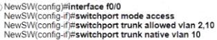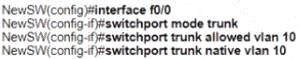 * Allow the switch to pass traffic from future VLAN 10. Which configuration must be applied?