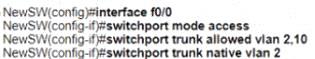An engineer is configuring a new Cisco switch NewSW, to replace SW2 The details have been provided
