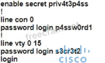 A Cisco engineer is configuring a factory-default router with these three passwords:
