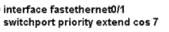 An engineer is configuring data and voice services to pass through the same port. The designated switch interface fastethernet0/1 must transmit packets using the same priority for data when they are received from the access port of the IP phone. Which configuration must be used?