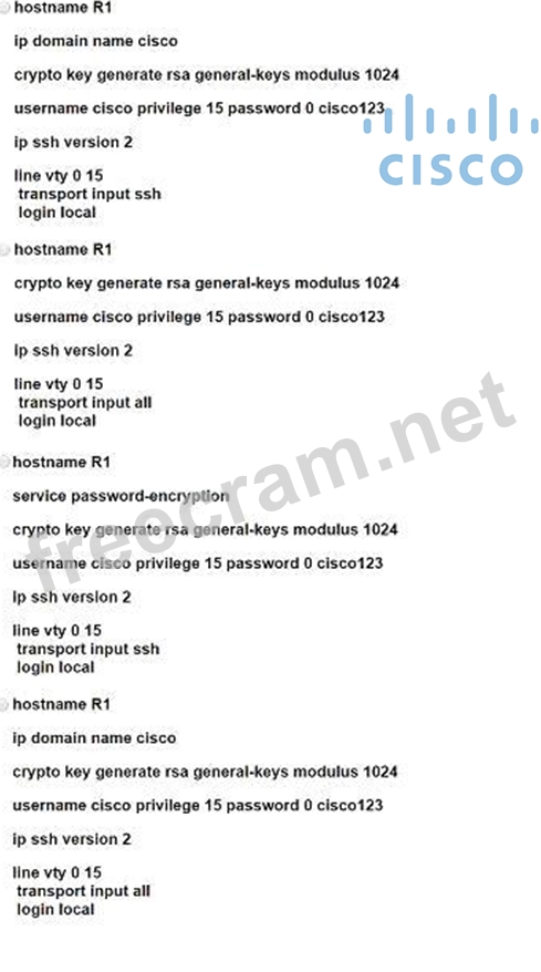 An engineer is configuring SSH version 2 exclusively on the R1 router. What is the minimum configuration required to permit remote management using the cryptographic protocol?