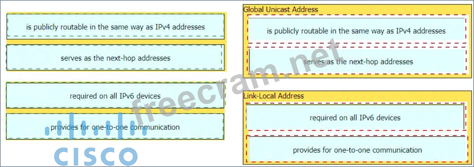 Drag and drop the characteristic from the left onto the IPv6 address type on the right.